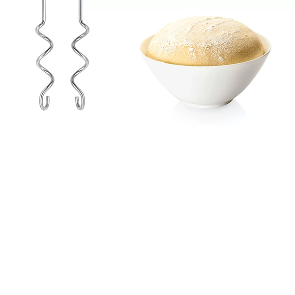 • Stainless steel turbo whisks and dough hooks: ensure perfect mixing, beating and kneading.