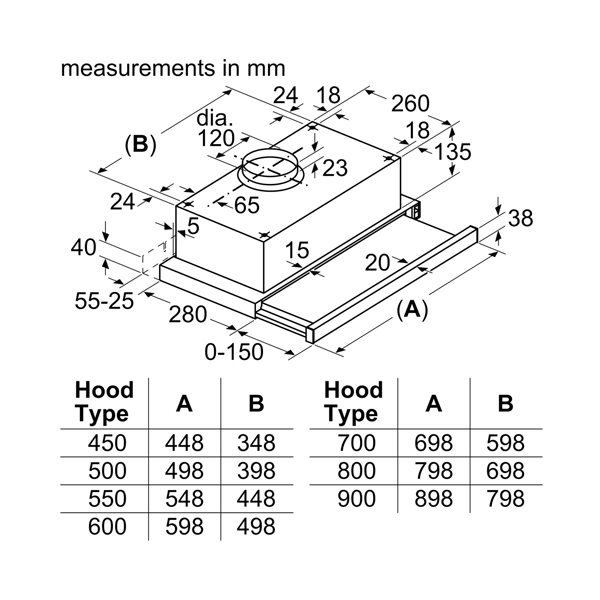 The telescopic cooker hood: practically disappears into your upper cabinet, giving you a sleek kitchen front.
