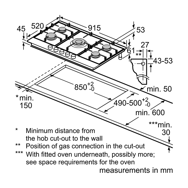 Bosch Series | 6, Stainless Steel Integrated 5 Burner Gas Hob-PCR9A5B90M
